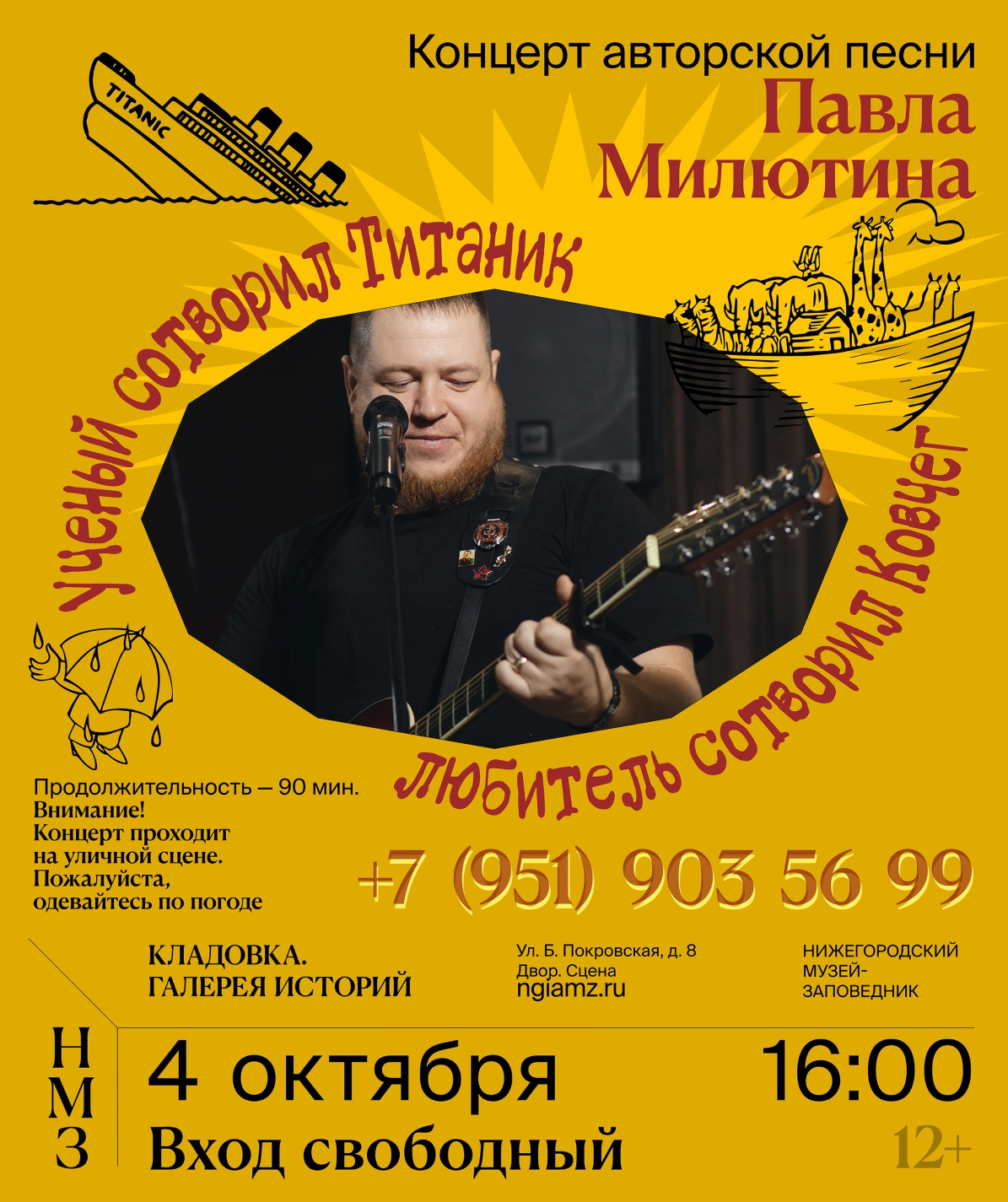 Концерт авторской песни Павла Милютина пройдет на открытой сцене во дворике музея-филиала "Кладовка. Галерея историй".