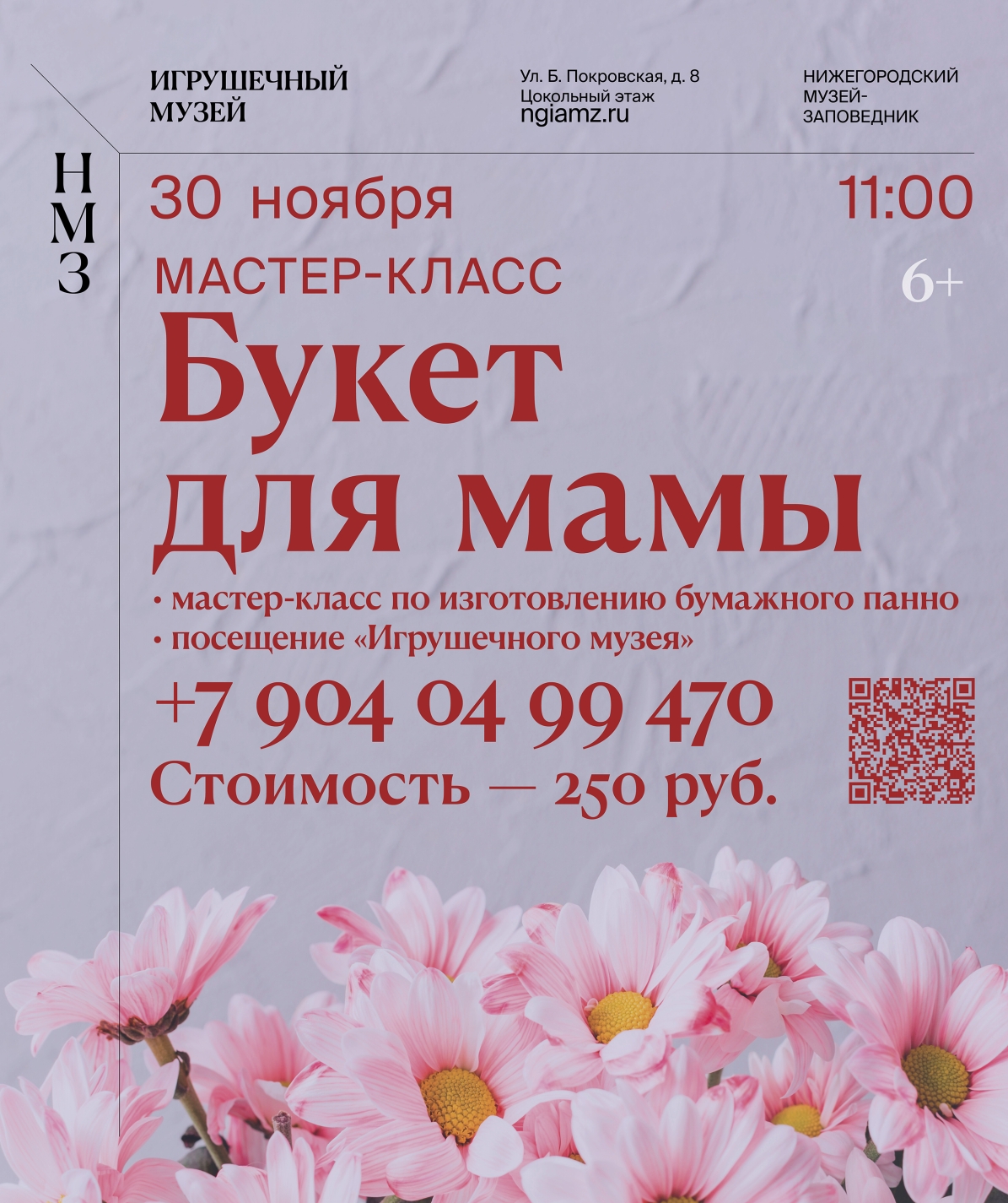 День мам – ещё один замечательный повод сделать приятный сюрприз для самого близкого человека. «Игрушечный музей» приглашает ребят на мастер-класс по созданию бумажного панно «Букет для мамы».