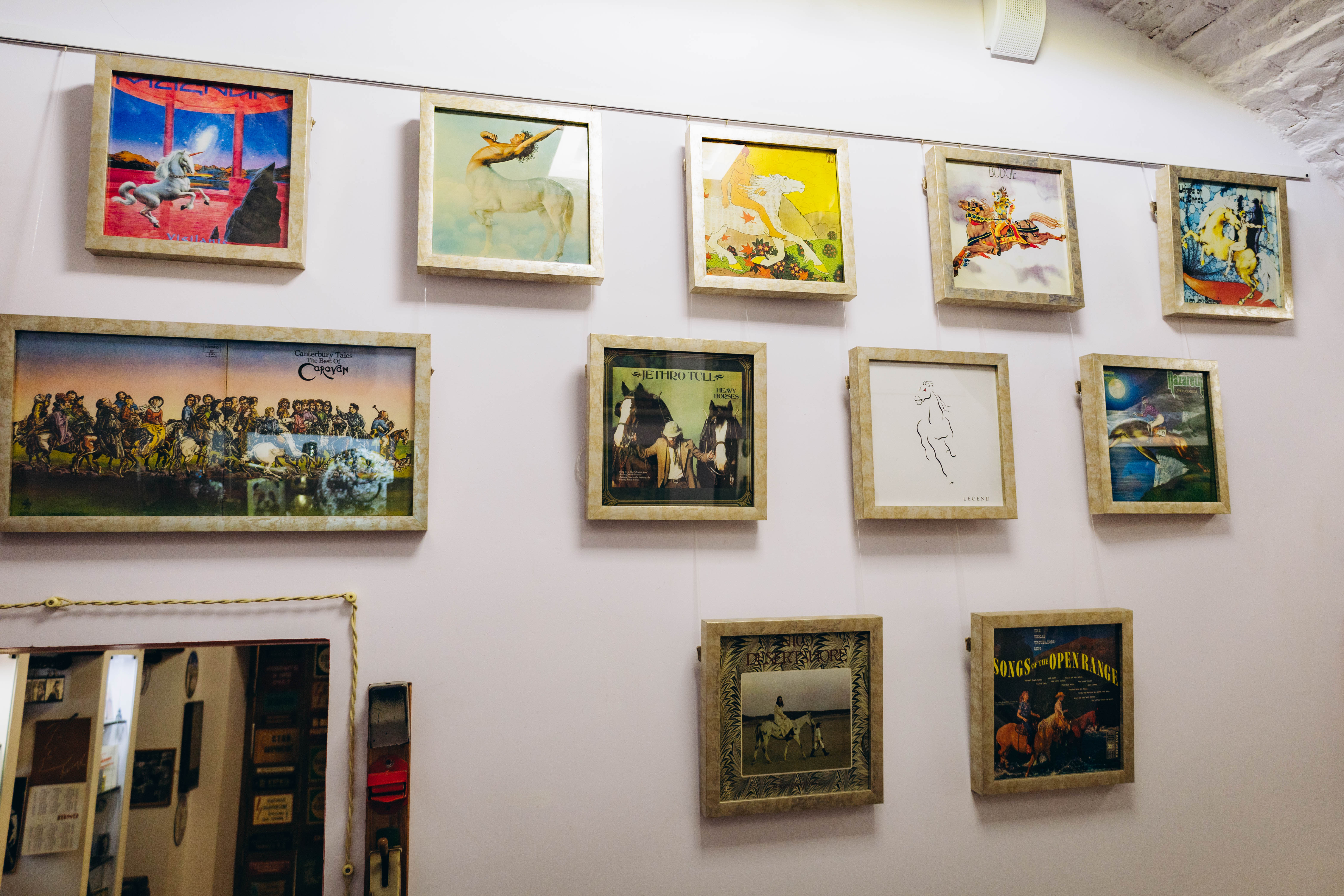 Выставку украшают обложки пластинок с русскими сказками и тематическими сборниками русских народных песен. Оформители (Юрий Балашов , Сергей Власов, Юрий Широченков) советских пластинок часто использовали стиль палеховской миниатюры и элементы других росписей (Городецкая , Мезенская и др.) для изображения лошадей на обложках. Завитки росписи и яркие цвета помогали отразить ту самую огненную энергию лошадей.