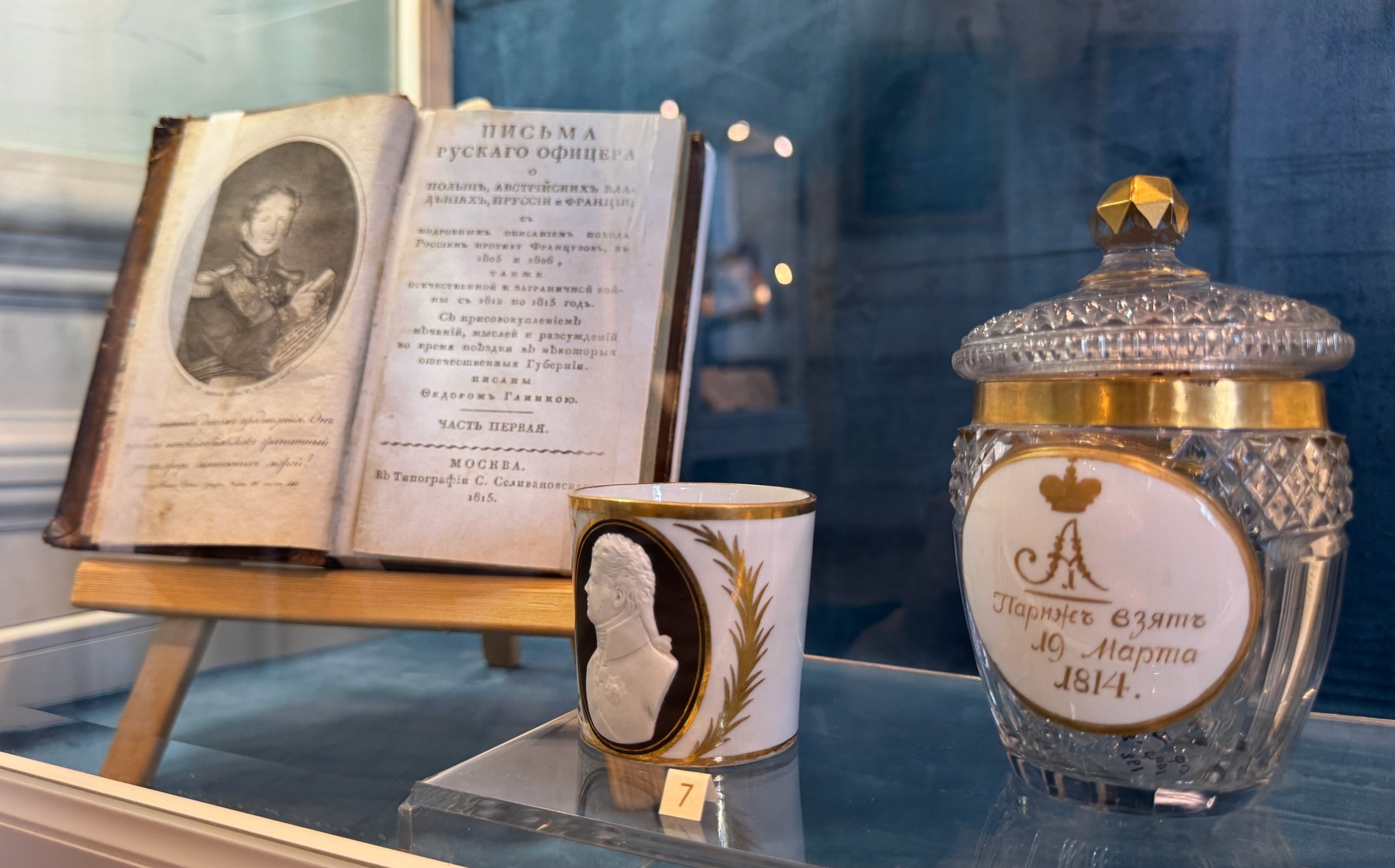 На выставке в Усадьбе Рукавишниковых представлены около 50 живописных работ, выполненных в жанрах миниатюры и портрета, а также фарфор, стекло, оружие и трубки из фондов музея-панорамы «Бородинская битва». На портретах представлены образы русских офицеров – участников Отечественной войны 1812 года и заграничных походов и членов их семей.