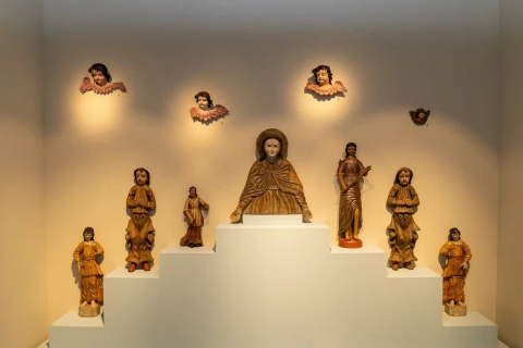 Пространство выставки разделено на несколько тематических блоков, посвященных ангельским чинам, образам евангелистов и святых, иконографии Богоматери, а также циклу, охватывающему события от Тайной вечери до Погребения. Такой подход позволяет не только продемонстрировать художественную ценность полихромной деревянной скульптуры, но и более глубоко погрузить в мир православной культуры.