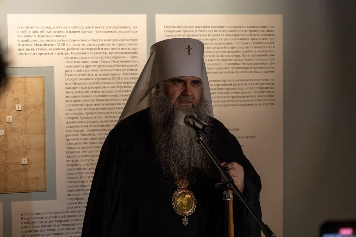 «Событие, которое совершается сегодня, поистине уникальное явление для культурной жизни нашего региона и имеет огромное просветительское значение. Благодаря совместной работе представителей власти, музейного сообщества, реставраторов, духовенства мы получили возможность приобщиться к еще одному направлению искусства – деревянной скульптуре. За долгую историю ее существования отношение к ней было неоднозначным, но сегодня, взирая на эти образы, мы видим на каком высоком профессиональном уровне они выполнены, сколько души в них было вложено. Наши далекие предки работали с привычным, можно сказать, основным в их деятельности материалом – деревом и именно к нему прибегли, когда на Русь приняла христианство. Православная вера стала осмысляться мастерами и получила воплощение в числе прочего в деревянной скульптуре, которая как дань уважения к святым является очень искренней. Надеюсь, что выставка вызовет интерес у нижегородцев, что ее посетят и представители младших поколений и как можно больше людей приобщится к этой древней традиции в искусстве. Проведение подобных выставок помогает сохранять наше культурное наследие, делает его близким и понятным для большого круга людей, а сохранение наших традиций, истории и культуры – залог для успешного развития страны», – отметил митрополит Георгий.
