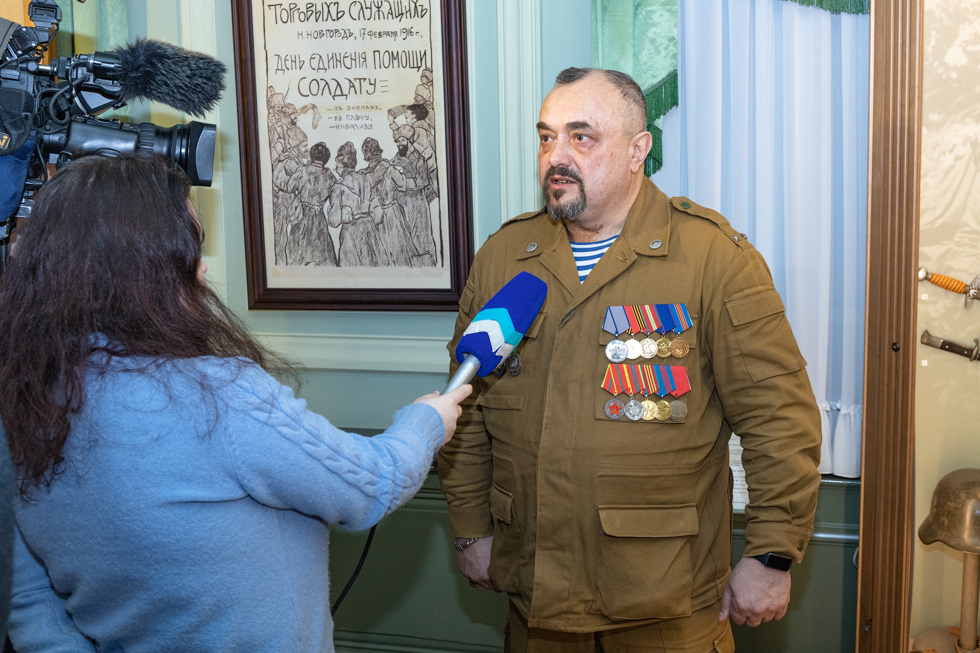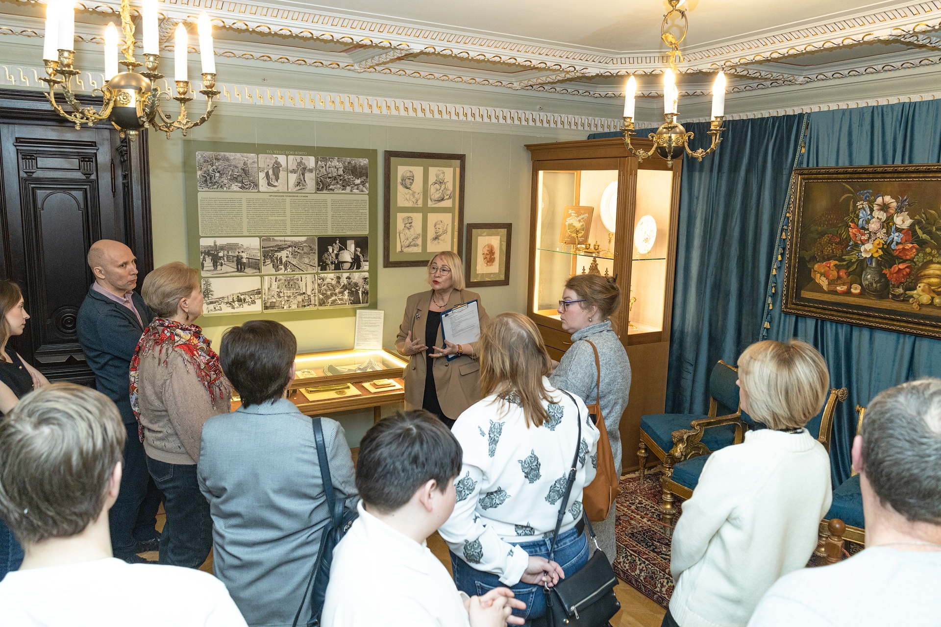 Особое место в экспозиции занимает серия живописных карандашных рисунков — портретов солдат Великой Отечественной войны, выполненных горьковским художником А. Г. Варламовым в 1944–1945 гг., и копия картины И. Ф. Хруцкого «Плоды и цветы», написанная немецким художником Хенлайн в советском плену.