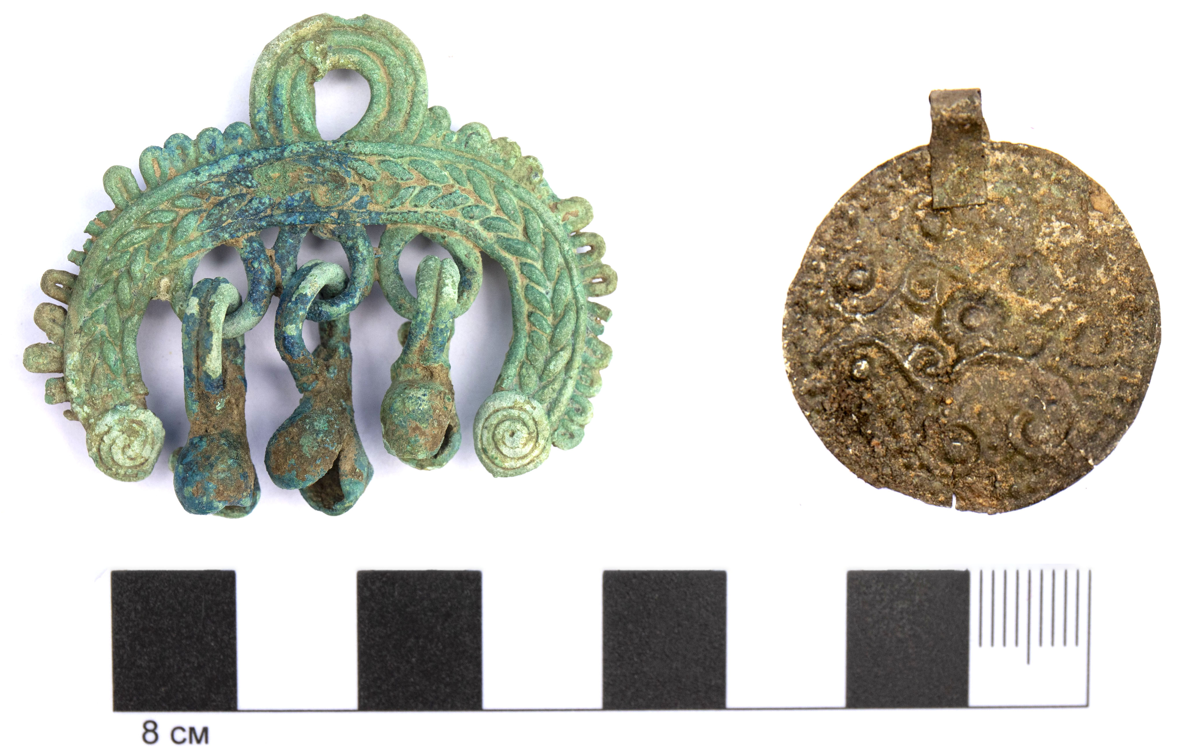 Ажурная подвеска-лунница и монетовидная подвеска из поздних женских захоронений