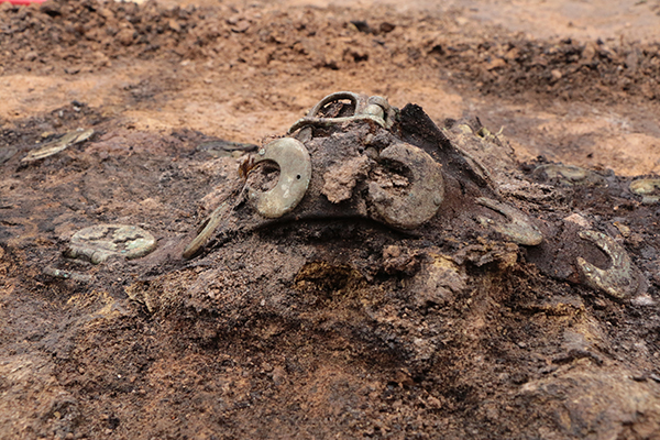 Участок с погребениями первой половины Х в. расположен между северным и южным раскопами и был исследован в прошлых сезонах. Здесь было раскопано 26 захоронений, в которых присутствовали поясные наборы, сумки, бусы, шиферные пряслица, арабские дирхемы, свидетельствующие о включенности муромы в трансконтинентальную торговлю и о первых контактах с древнерусским населением.