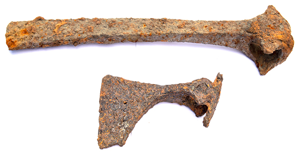 Мужские захоронения в этой части могильника отличаются аскетичным набором инвентаря, включающим нож, кресало с кремешком, оселок и лировидную пряжку. В этой части могильника найдены топоры со щекавицами с необычайно длинным лезвием. В одном из захоронений этот топор сопровождался боевым топориком с вырезным обухом и оттянутым вниз лезвием. Такие топоры широко распространены в древнерусских курганных могильниках XI–XII вв., считаются атрибутом представителей военного сословия. В этом сезоне коллекция Звягинского могильника пополнилась тремя боевыми топорами. Помимо боевых топориков необычной для поволжских финнов является находка навесного цилиндрического замка и ключа. Обычай помещать в погребения эти предметы характерен для скандинавских могильников, например, они известны в Бирке. На территории нашей страны этот обычай также связывается со скандинавскими традициями и встречается в Гнездовских, Владимирских курганах и других дружинных некрополях. Находка западноевропейского денария в этом же погребении позволяет датировать его XI в.