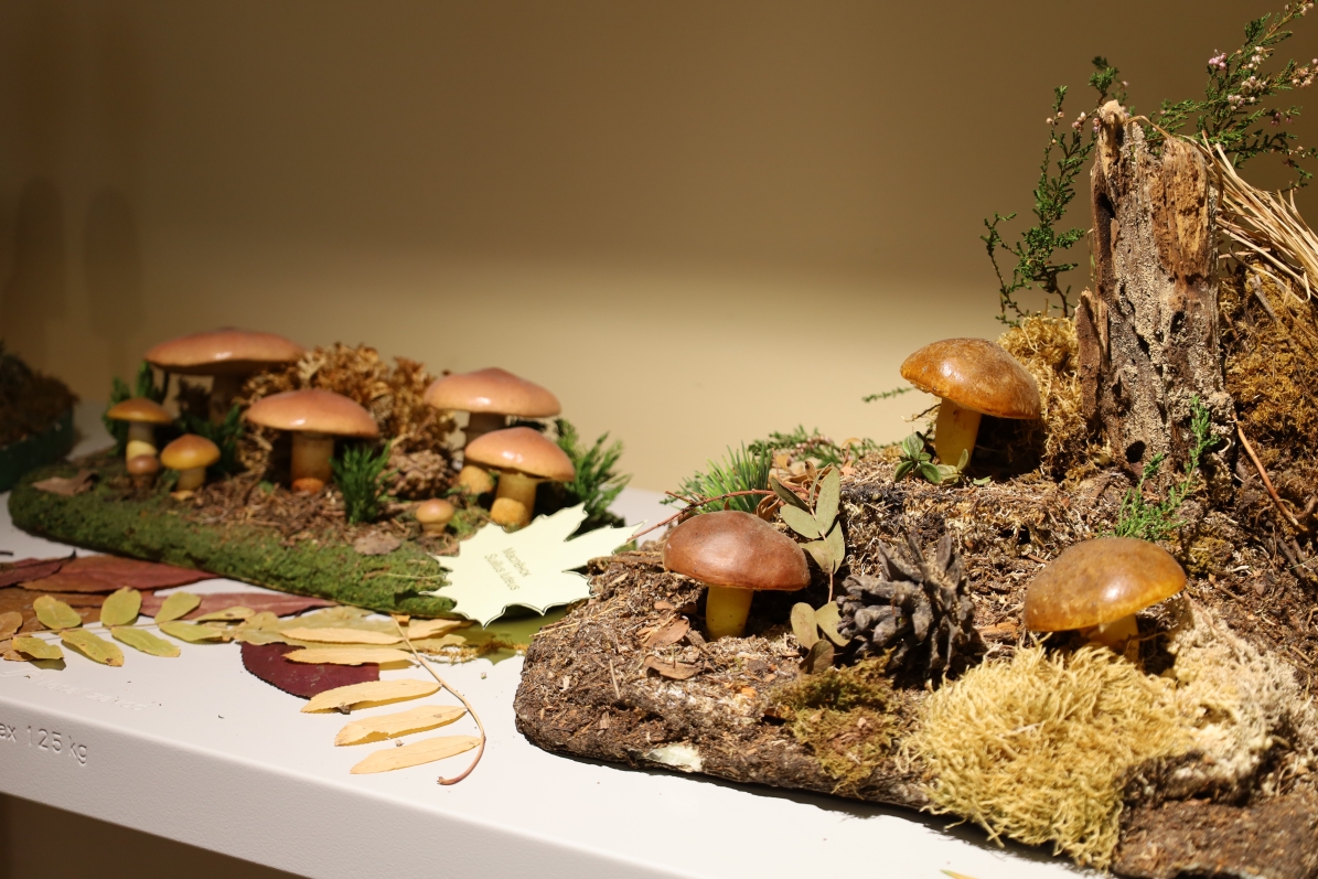 С изумительной точностью сделанные ботанические копии грибов словно чудом перенеслись из леса в музейный зал. В окружении коряг, мха и травинок они так и манят их сорвать и спрятать в корзинку!