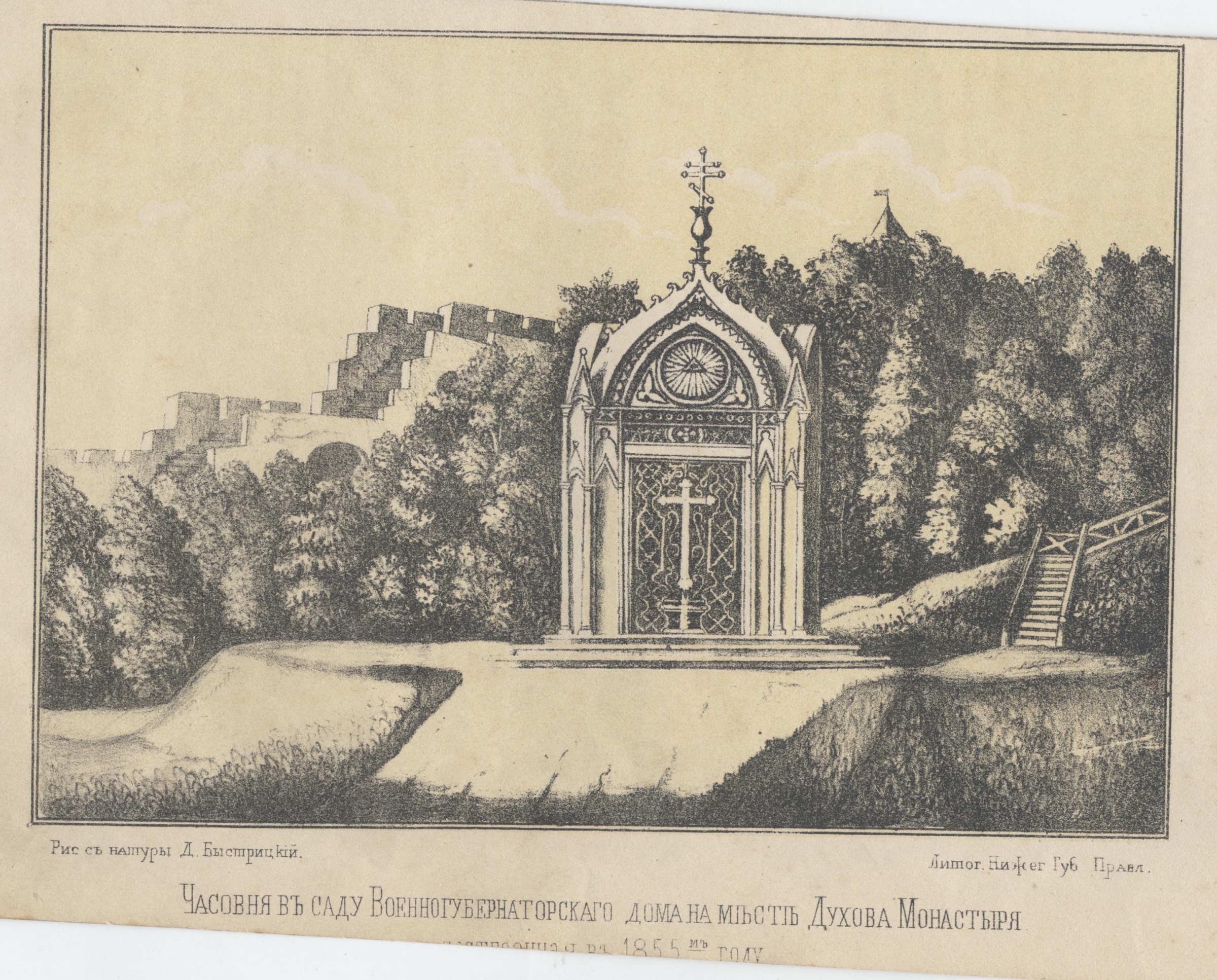 После строительства дома военного губернатора, на откосе за ним был разбит сад. Проект сада был разработан петербургским придворным садовником Францом Пельцелем (Александровский сад в Москве и Александрия в Петергофе).