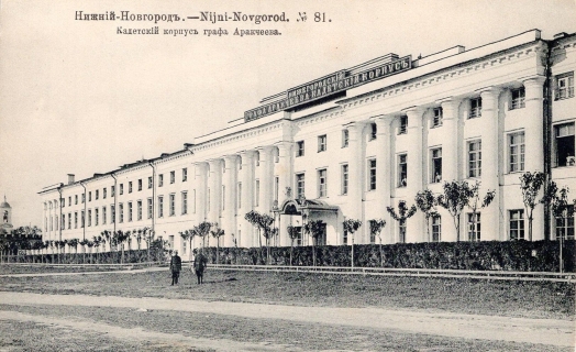 Присутственные места были построены в 1782 – 1785гг. В 1809 году здание сильно пострадало при пожаре, и было перестроено в упрощенном стиле. В 60-е годы XIX века здесь находился Графа Аракчеева кадетский корпус. Сегодня в здании располагается Законодательное собрание Нижегородской области.